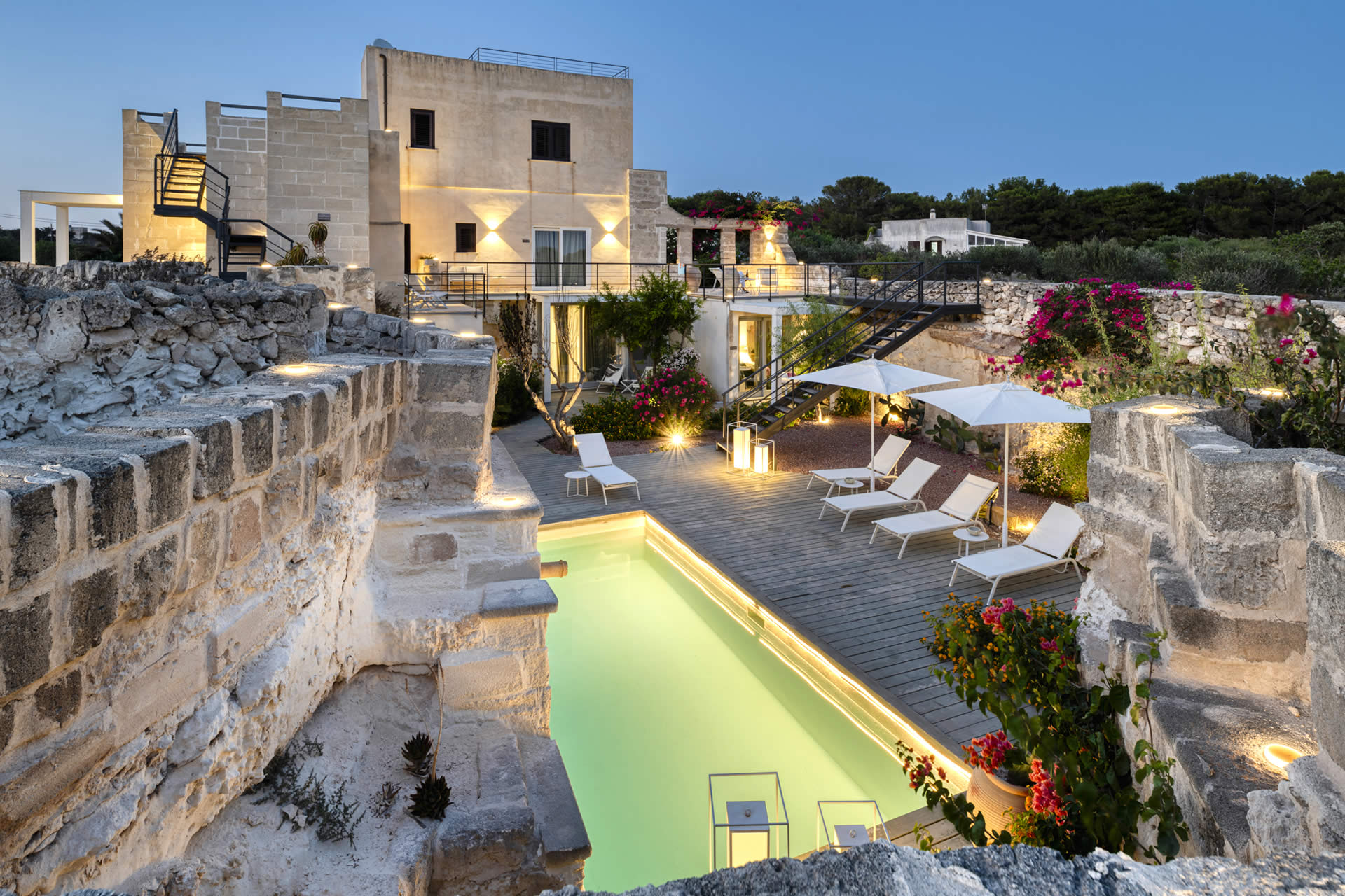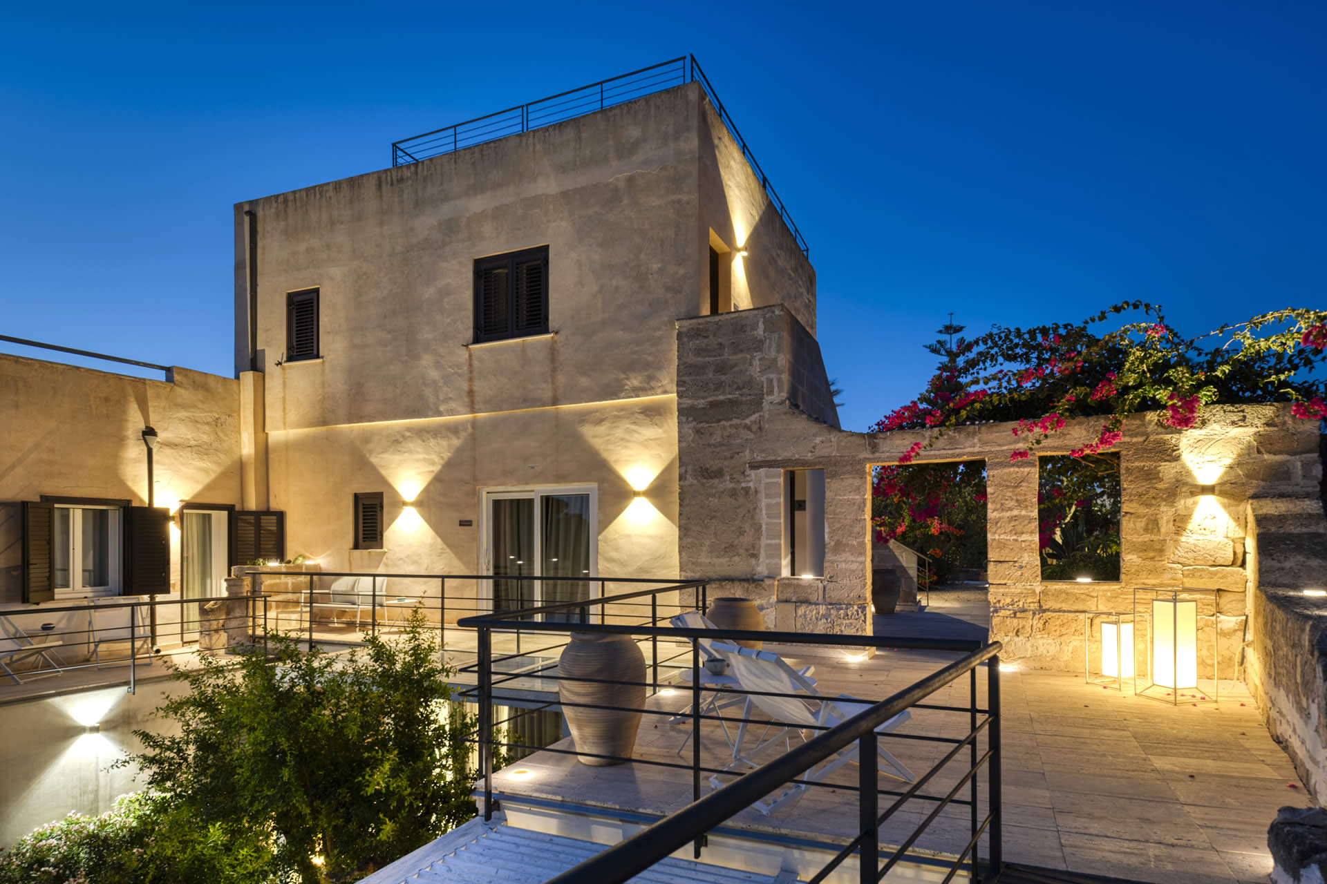 Ogni camera o appartamento dispone di incantevoli terrazze arredate con sedie a sdraio, tavolo da pranzo e salottino relax.