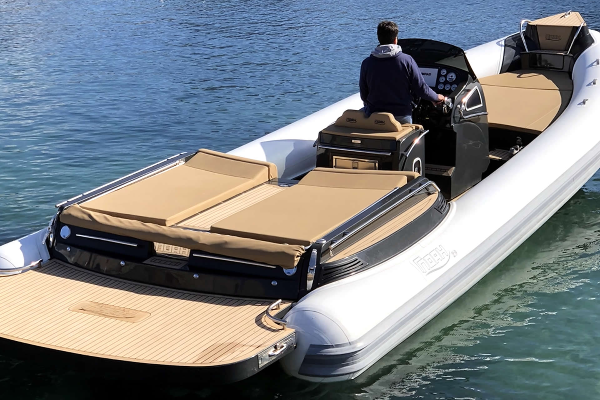 Il Noah 29 è il battello ideale per una mini-crociera in infinita libertà, ma anche per uscite giornaliere con tanti ospiti. Dotato di un lay-out del ponte di coperta che ne amplifica l'abitabilità, questo maxi-rib soddisfa le più diffuse esigenze di semplicità ed eleganza oggi avvertite dalla clientela e conferma la cura maniacale del cantiere per i particolari (bitte a scomparsa e a molla, cerniera a filo, attuatori idraulici nei coperchi più piccoli e pistone elettromeccanico per il gavone poppiero) indice di un impegno costruttivo che premia l'attenta fase progettuale di ogni modello del cantiere.
